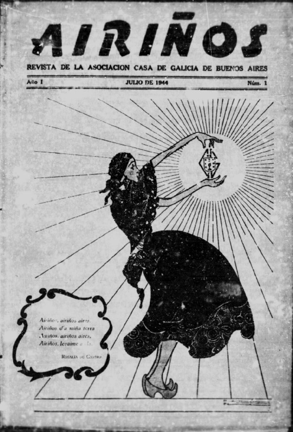 En 1944, la Casa de Galicia de Buenos Aires comenzó a editar la revista ‘Airiños’ para informar sobre diversos aspectos relacionados con la institución (convocatorias de asambleas, renovación de la comisión directiva, memorias y balances económicos, etc.) y con las actividades que esta organizaba. Además del carácter informativo, la cabecera destacaba también por su orientación cultural. Así, incorporaba colaboraciones de importantes personalidades que, a través de sus artículos, ahondaban en la historia, en la geografía, en la literatura o en las costumbres propias de Galicia, al tiempo que acercaban la influencia que estos tuvieron en América. Entre sus páginas también se incluían relatos y numerosas poesías. Álvaro Cunqueiro, Eduardo Blanco-Amor, Francisco Fernández del Riego, Julio Sigüenza, Rodolfo Prada o Wenceslao Fernández Flórez fueron algunos de los nombres que integraron la lista de colaboradores de la publicación.