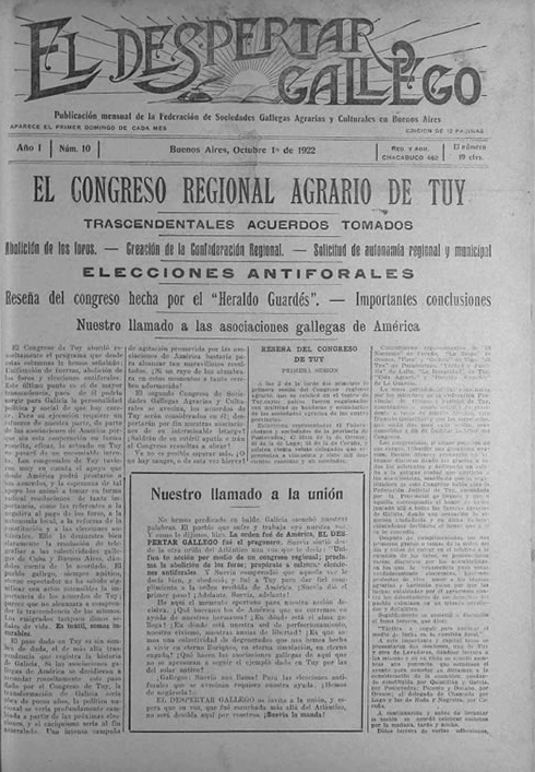 El ‘Repertorio da prensa da emigración galega’, proyecto que mantiene el Arquivo da Emigración Galega (AEG) del Consello da Cultura Galega (CCG), cierra este año con la puesta en la red de un nuevo lote de ejemplares del periódico ‘El Despertar Gallego’, órgano oficial de la Federación de Sociedades Gallegas en la República Argentina.