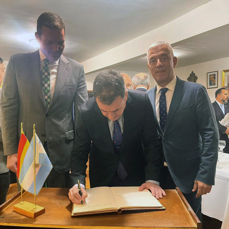 El conselleiro, acompañado de su director, Xosé Manuel Besteiro, conoció la actividad de este grupo que, además de su intensa tarea cultural, proyecta la imagen y la tradición histórica del Ayuntamiento de A Estrada hacia el exterior. “Enhorabuena por seguir manteniendo vivo el espíritu de A Estrada en Argentina tras 80 años comprometidos con nuestra cultura y tradición”, añadió Román Rodríguez.