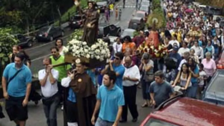Procesión de la imagen del Apóstol Santiago hacia la capilla del mismo nombre en la sede campestre de la HGV en Valle Fresco.