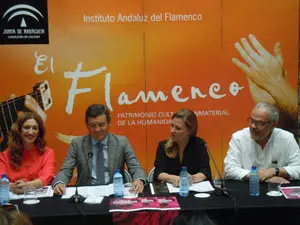 El secretario general de Cultura, Eduardo Tamarit; la directora del Instituto Andaluz del Flamenco (IAF), María Ángeles Carrasco; la directora artística de Arte Flamenco,…